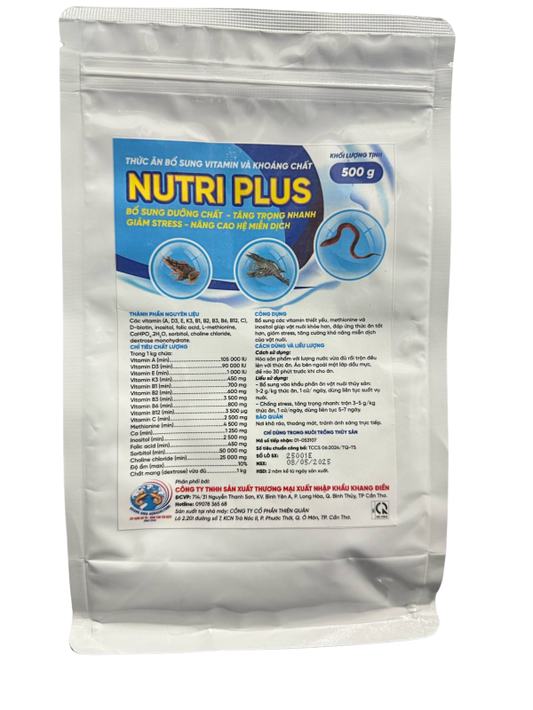 • Cá thịt, cá bố mẹ: 1 kg/500 kg thức ăn, dùng liên tục trong suốt vụ nuôi.
