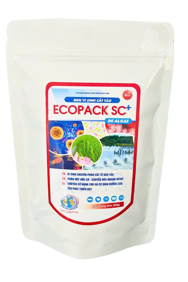 Cách sử dụng: Hòa sản phẩm với nước sạch rồi tạt đều xuống ao nuôi. Hoặc ủ sục khí (hoặc yếm khí), ủ 227g ECOPACK SC+ với 50 lít Nước sạch và 10 kg Mật đường. Sau 18 – 24 giờ tiến hành tạt xuống ao để tăng hiệu quả sử dụng.
